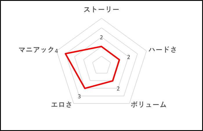 拘束立ち絵がメインなので2回目はよりハードになるといった段階エロがなく、ハードさは低めです。敗北エロや非日常エロが少ないためボリュームも値段を考えると少ないかなと感じました。