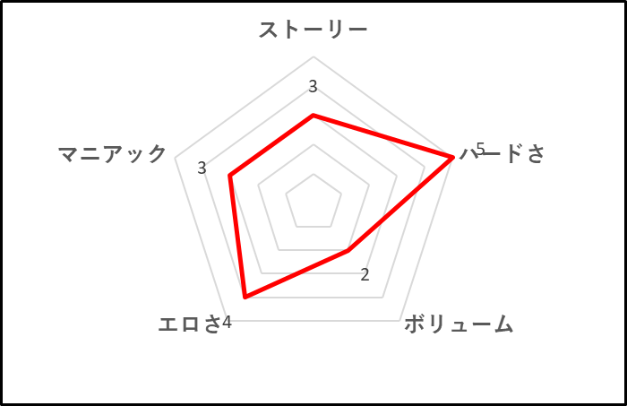 いろんな体位やシチュを採用し、なんとかワンパターンにならないようにしてる努力は感じられますが、閉じ込められた空間で竿役もオークのみのため、どうしてもフィニッシュが大量噴出アヘ顔白目でワンパターンになりがち。